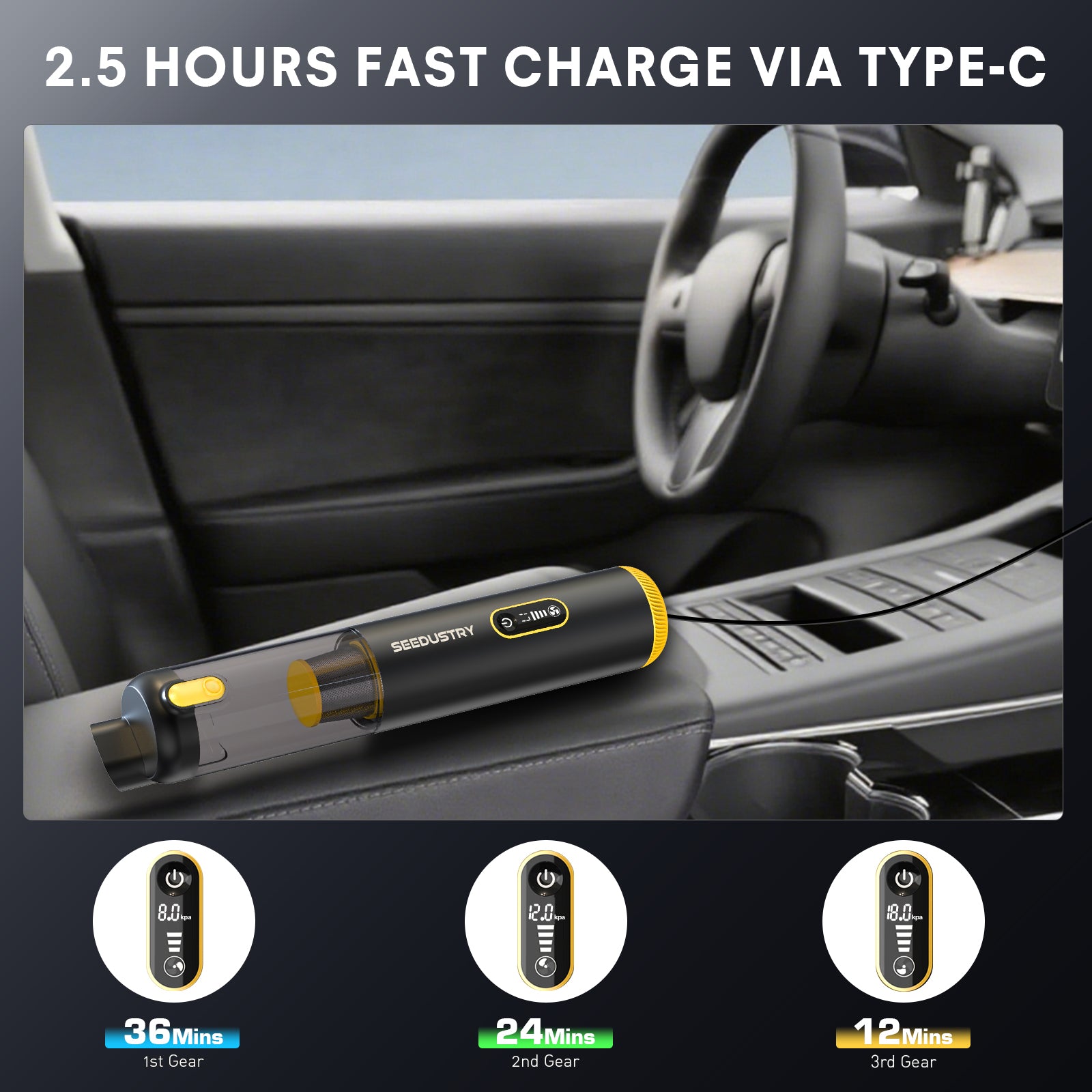 Meet the SEEDUSTRY V-C08 Pro—the ultimate all-in-one handheld vacuum designed for life on the go. With 18,000Pa ultra-strong suction, this compact and cordless cleaner effortlessly handles dust, crumbs, pet hair, and debris in your car, home, or workspace.